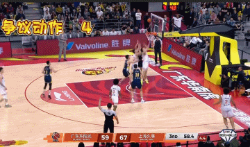 次节3分钟左右,古德温一对一背打张皓嘉,在出手的一瞬间古德温与张皓嘉发生肢体接触后倒地,理论上这是一个A点到B点的投篮犯规,但是裁判没有做出吹罚。