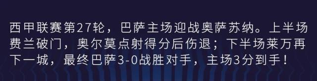 乐鱼体育-【西甲】费兰+奥尔莫+莱万破门!巴萨3比0奥萨苏纳
